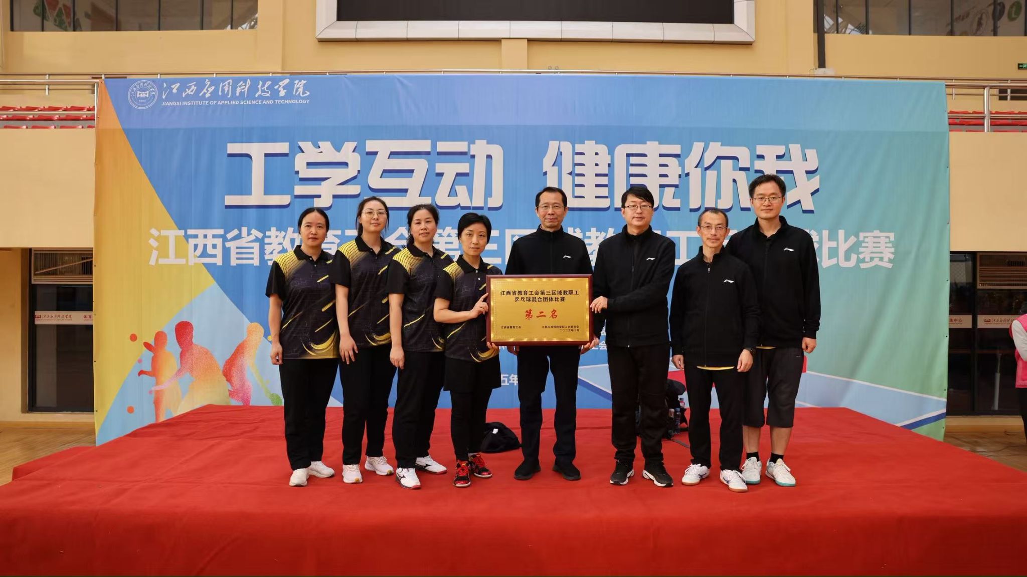 江中新闻网讯(通讯员 王劭华 汪丽莉)10月25日,江西省教育工委第三区域乒乓球比赛在江西应用科技学院体育馆落下帷幕,我校教职工代表队在党委副书记章德林带领下团结奋战,荣获团体第二名。