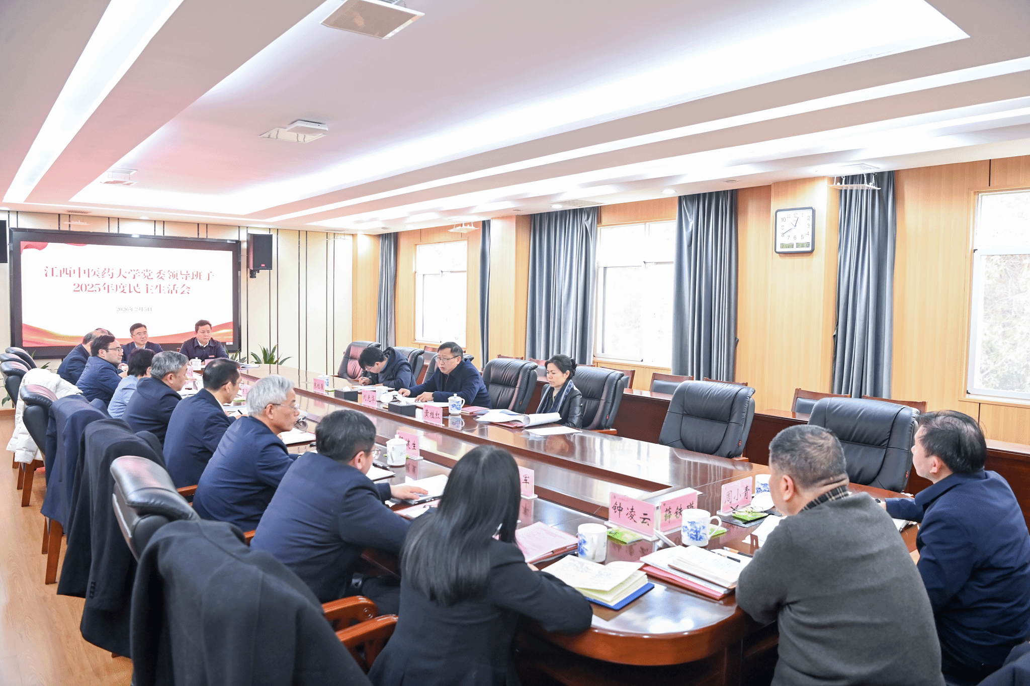 江中新闻网讯(记者 杨清跃)按照省委统一部署,2月5日,学校党委领导班子召开2025年度民主生活会,深入学习贯彻习近平新时代中国特色社会主义思想,全面贯彻落实党的二十届四中全会精神,以打攻坚战、持久战的决心和恒心,锲而不舍落实中央八项规定精神,推进作风建设常态化长效化,以优良作风凝心聚力、真抓实干,奋力开创一流中医药大学建设新局面。