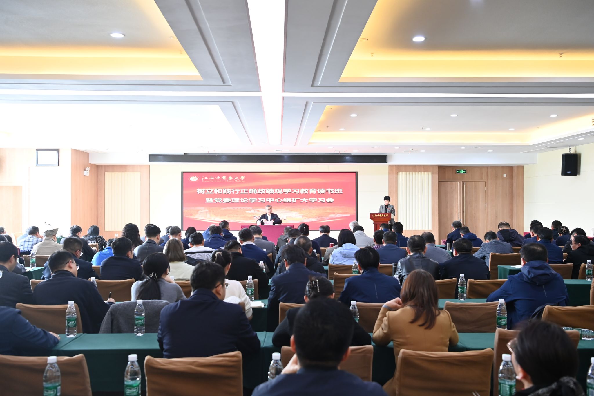 江中新闻网讯(记者 付淳 杨清跃)4月1日,学校树立和践行正确政绩观学习教育读书班开班。党委书记黄加文作动员讲话,强调要充分发挥领导干部的示范带头作用,引领带动全校党员、干部深入学习贯彻习近平总书记关于树立和践行正确政绩观的重要论述,牢牢把握“立党为公、为民造福、科学决策、真抓实干”的总要求,深刻认识政绩观错位的危害性,切实树立好、践行好正确政绩观,以实绩实效推动学校“十五五”开好局、起好步,奋力建设一流中医药大学。党委副书记、校长朱卫丰主持开班式,江西省委党校党史党建教研部主任黄德锋教授作专题辅导报告。全体校领导、副处级以上干部参加读书班。