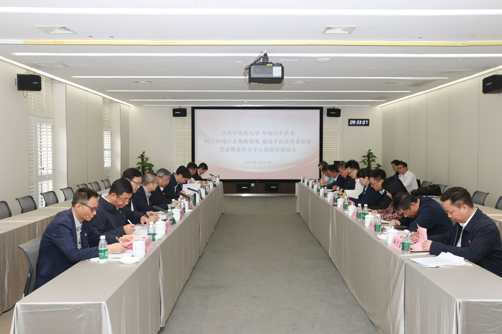 江中新闻网讯(记者 付淳 余浩)4月27日,江西中医药大学党委理论学习中心组赴江中药谷开展现场研学,并与华润江中药业党委理论学习中心组开展联学联研活动,聚焦牢记嘱托、感恩奋进,树立和践行正确政绩观,深化产学研融合、强化校企协同育人开展交流研讨。学校党委书记黄加文,华润江中药业党委书记、董事长刘为权讲话,校企双方班子成员参加,江西科技师范大学党委委员、党委宣传部部长余玉荣列席会议。